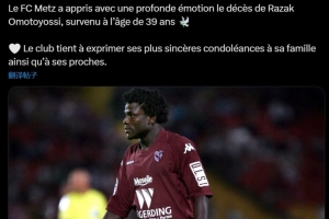梅斯官方写道:“俱乐部怀着深切的哀痛之情得知·奥莫托约西不幸去世,享年39岁。俱乐部向他的家人及亲友致以最诚挚的慰问。”
