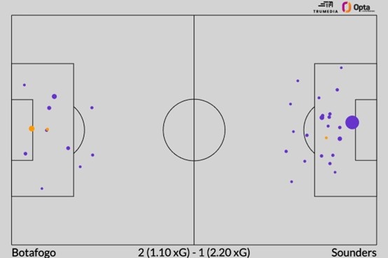 用数据模型分析时,你会因为博塔弗戈对一支MLS球队“先进球然后死守”赢了,就给他们加分吗?还是该给西雅图海湾人加分,因为他们创造了更好的机会?